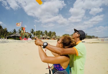 Paba Kite School in sunny beach Mui Ne, Viet Nam, hooks you up with budget-friendly kitesurfing lessons. Learn from the master kite surfers.